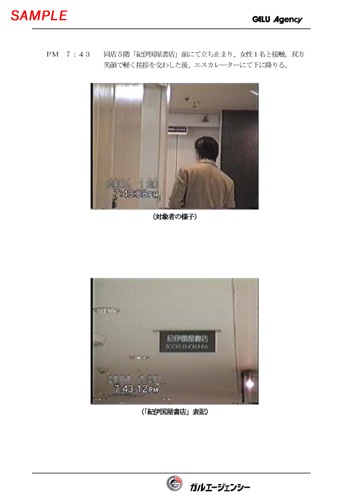 またDVD-Rまたはビデオテープのいずれかをお渡しいたしますので映像でも確認して頂けます。調査内容によっては映像をお渡ししない場合も御座います。